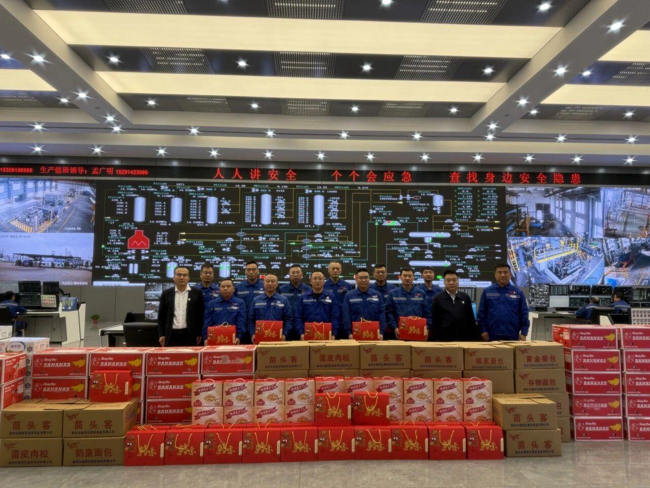10月6日,天元公司董事、總經理喬柏,黨委委員、副總經理趙耀飛檢查節(jié)日期間安全生產工作并慰問節(jié)日期間堅守崗位的干部職工,為他們送去慰問品。喬柏一行先后前往各生產裝置區、中心控制室以及職工餐廳,查看節(jié)日期
